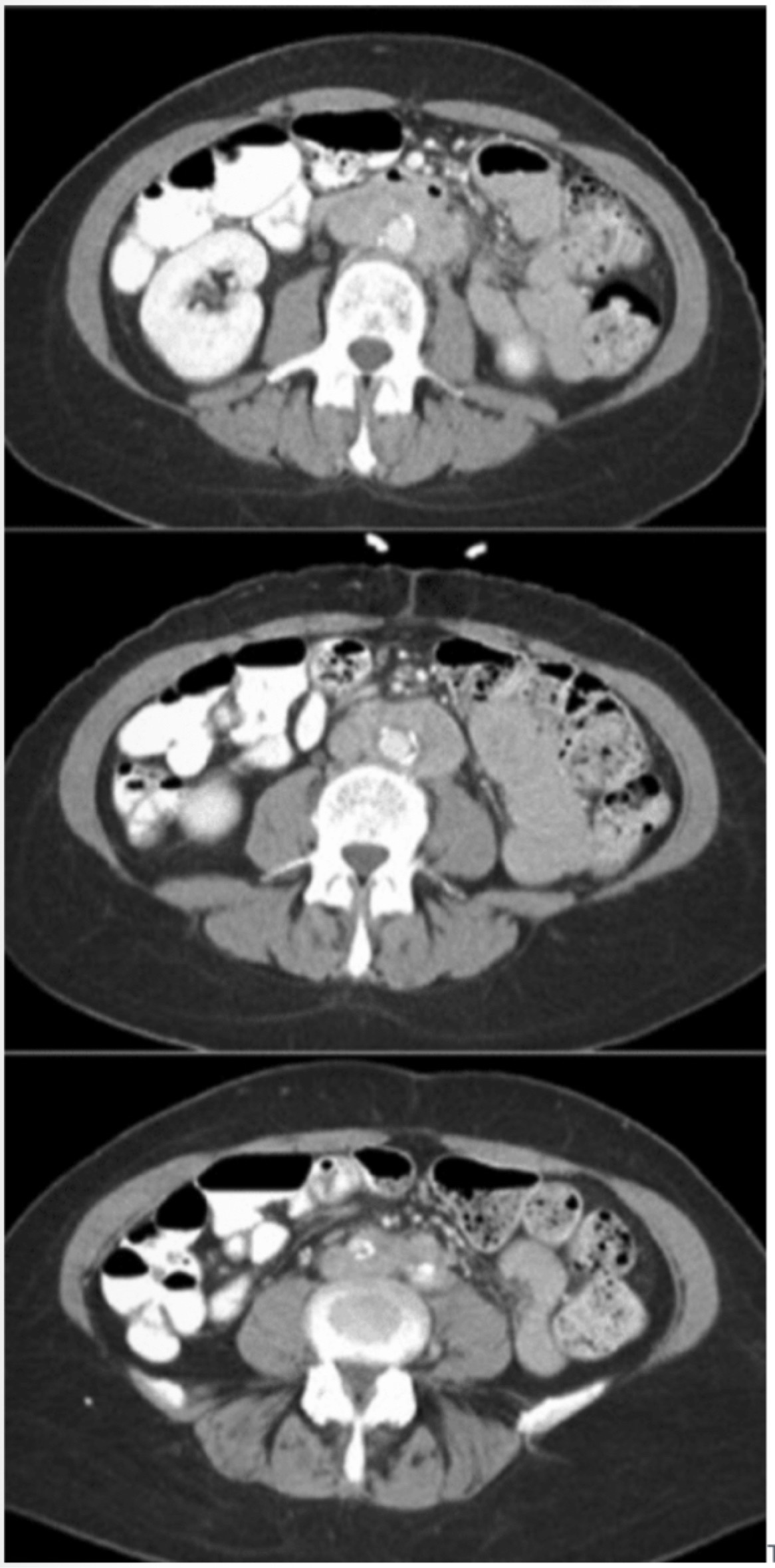 The case illustrates the ureteral involvement in patients with chronic peri-aortitis. There is a time-dependent regression of peri- aortic fibrosis after aneurysm exclusion, usually requiring at least four to six months, and the regression rate may be slow but persistent. To what extent the use of corticosteroids in some patients contributed to outcomes of interest is unclear. Tamoxifen has been used with some success as an alternative to steroids for peri-ureteral fibrosis but is not indicated here. A systematic review of the literature indicates that in terms of regression of peri-aortic fibrosis, surgical aneurysm repair is superior to EVAR. Persistent peri-aortic fibrosis occurs in 14% of patients treated with open surgical aneurysm repair. After EVAR, up to 40% of patients will not have resolution of peri aortic fibrosis. In this case, diagnostic testing (MRI scan or biopsy) to exclude malignancy is not indicated because of the presence of the aneurysm. Bilateral ureterolysis is not indicated this early in the disease course.