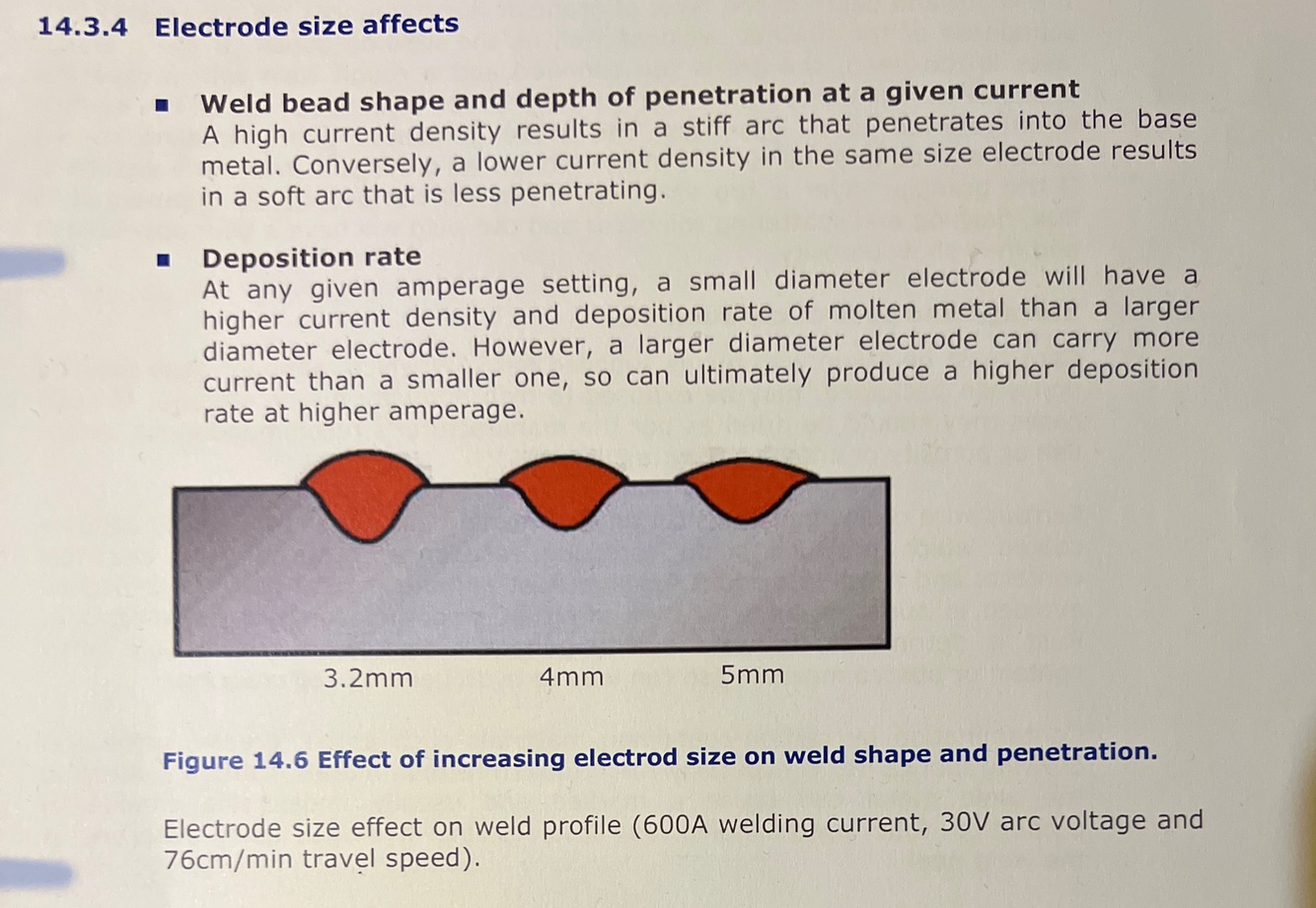 What affects do different size electrodes have on weld bead shape and deposition in saw?