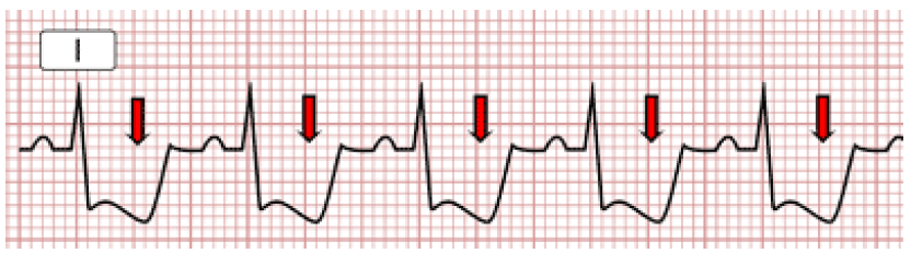 2. Seguido de descenso del ST (me indica que el endocardio está sufriendo LESION debido al tiempo demorado de isquemia)