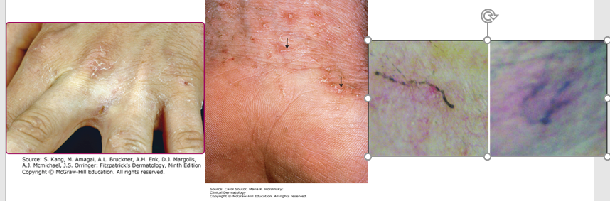 -(b) Burrows may obscured by scratching and secondary lesions.