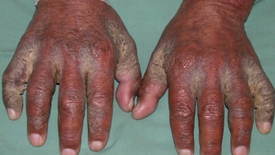 Crusted scabies is seen in patients with suppressed immunity, especially HIV.