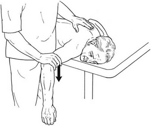 weak deltoid = loss of lever for testing = cannot apply resistance in this test