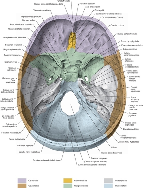 <em>Der Sulcus prechiasmaticus ist eine Rinne, die sich auf der Innenseite des Schädels befindet und dem Os sphenoidale zugeordnet werden kann.)</em>