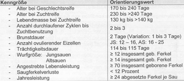 Wesentliche Merkmale der Fruchtbarkeit und Aufzuchtleistung sind: