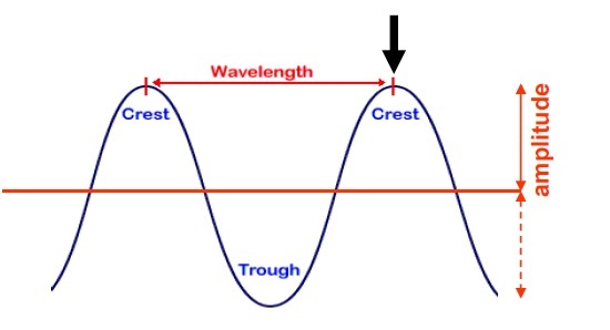 Distance between one wave crest to the next. Is expressed in lambda, λ, in meters or nanometers