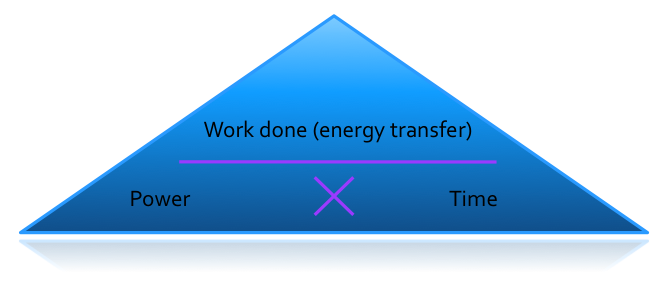 Power means “how much energy per second”, measured in watts (W) or kilowatts (kW)