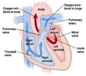 b) Each time the heart beats it pushes blood through the body vessels of the cardiovascular system. The heart is about the size of your fist and located in the center of your chest.