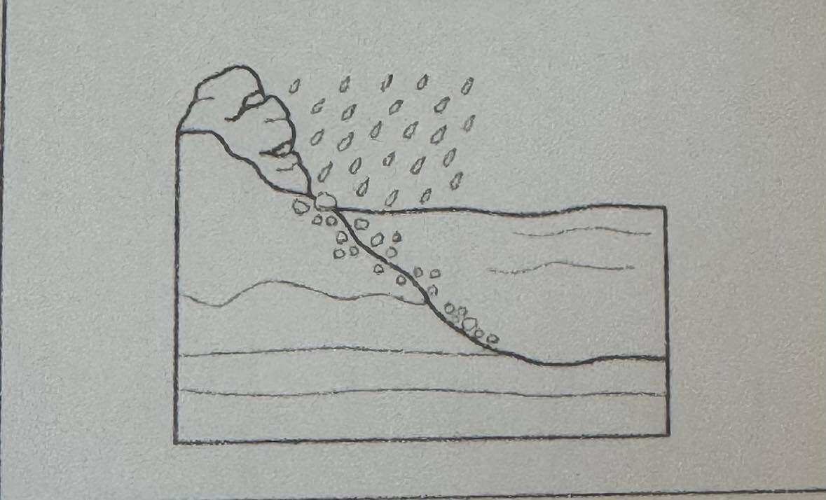 a. the breaking down of sediments