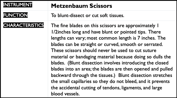 Mezenbaum Scissors - Perform blunt dissection and cut through soft tissue.
