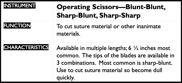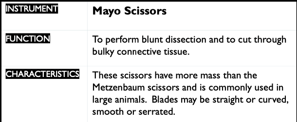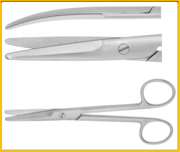Mayo Scissors - Perform blunt dissection and to cut through bulky connective tissue.