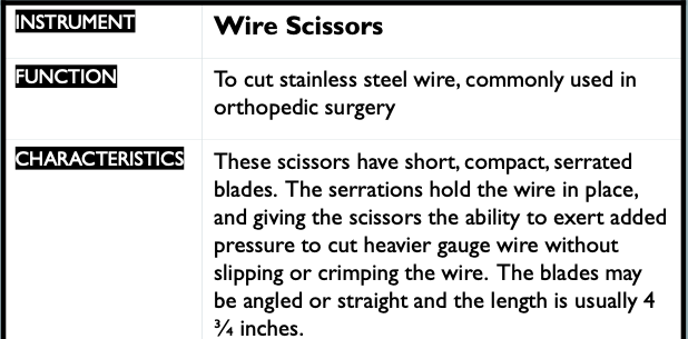 Wire Cutting Scissors - To cut stainless steel wire, commonly used in orthopedic surgery.