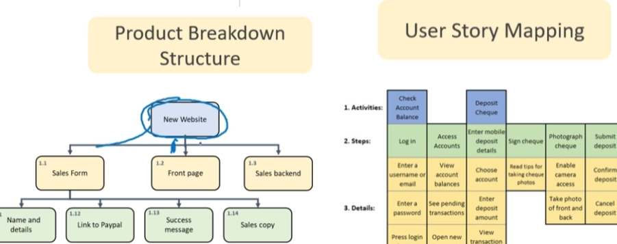 3.User Story Mapping: Visualize Users Journey through product and breakdown the journey into actionable User Stories. Created by entire team(PO, SM, Agile team, SHs) To get shared understanding.