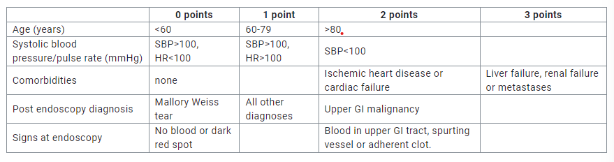 scoring for Upper GI bleed pre-endoscopy