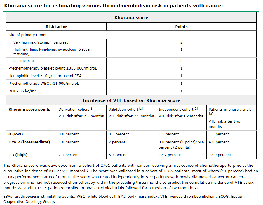 Khorana score estimates venous thromboembolism risk in patients with cancer