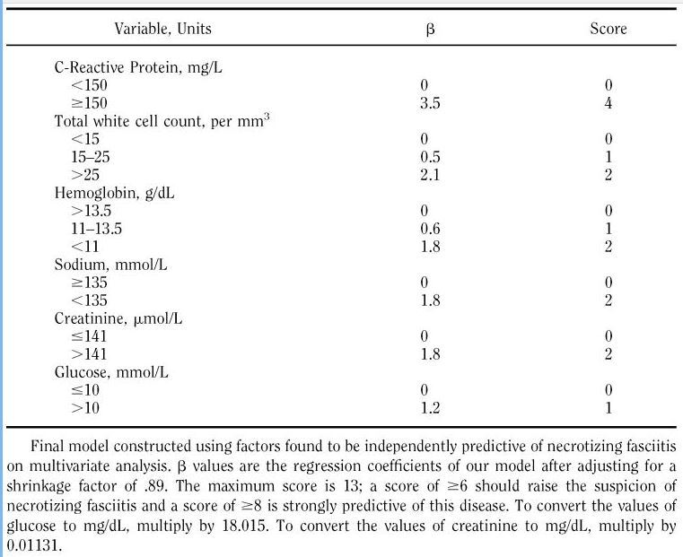 Laboratory Risk Indicator for Necrotizing Fasciitis (LRINEC) score