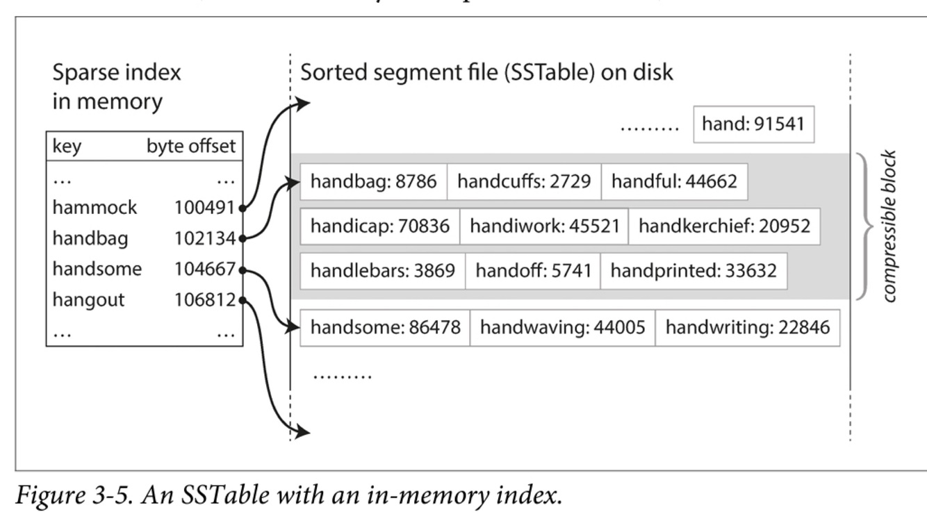 In Lucene, indexing engine, the mapping from term to postings list is kept in SSTable like sorted files, which are merged in the background as needed.
