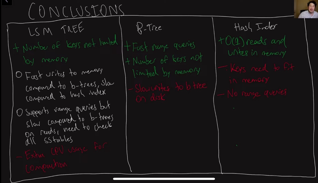 Bloom filters - what keys does not appear in the database. Never provide false negative - if it says a key does not exist, it would definitely not exist.