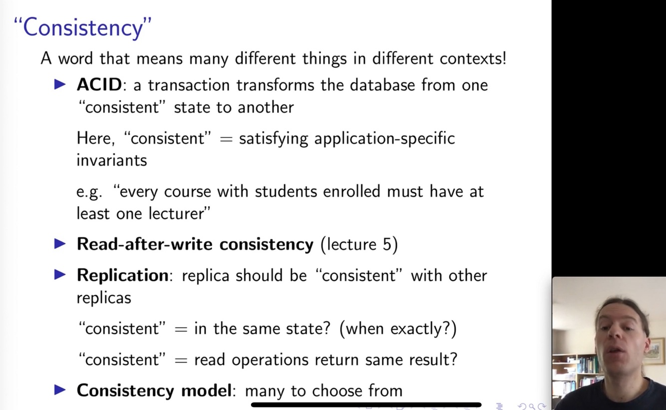 consistency focus mainly on maintaining the integrity of database in line with its invariants, rules and constraints.