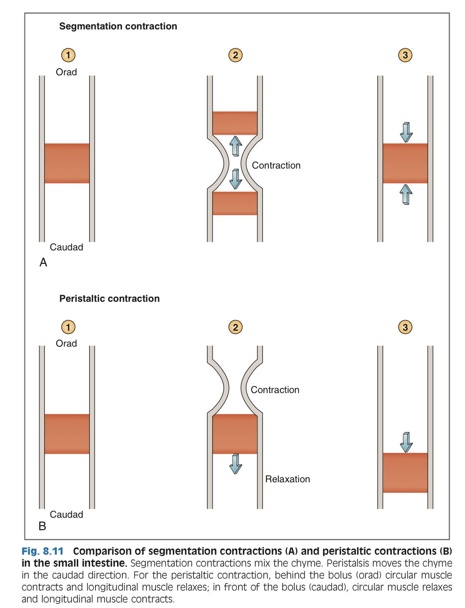 what are the two patterns of contraction in the small intestine?