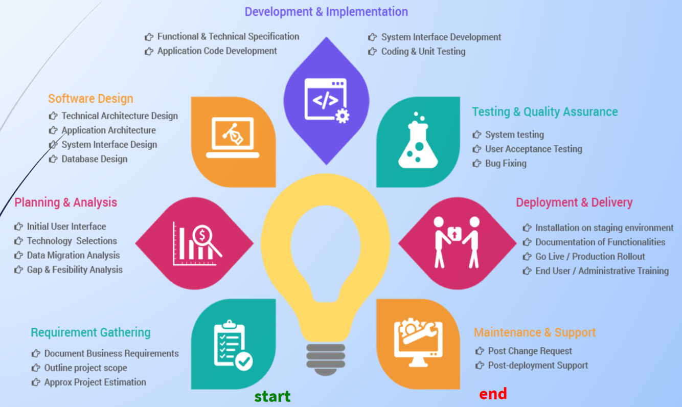 The following figure is a graphical representation of the various stages of a typical SDLC: