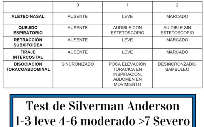 ¿ Con que puntaje según la escala de Silverman Andersen se cursa sin dificultad respiratoria ?