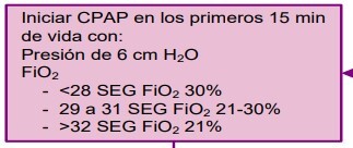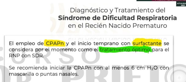 -Presion a 6cm H20 ( se recomienda CPAP de burbuja )