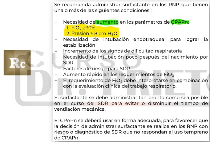 ¿ Cuáles son los criterios para adminisrtar surfactante en SDR1?