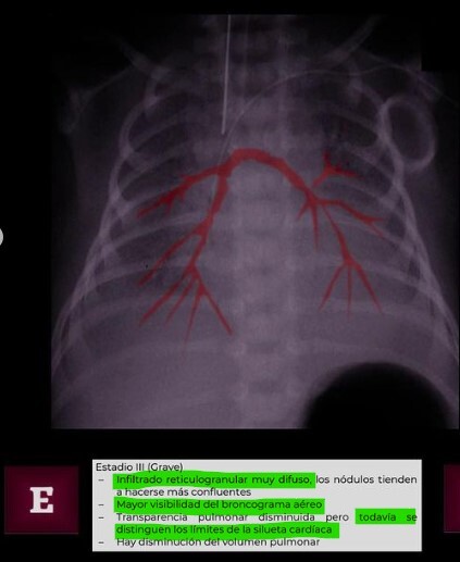 ¿ Además de la clinica y prematurez que se requiere para confirmar el diagnóstico de Sindrome de Dificultad Respiratoria en el Recién nacido ?