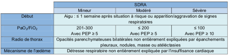 Critères diagnostiques du SDRA (Congrès européen de réanimation 2011) +++