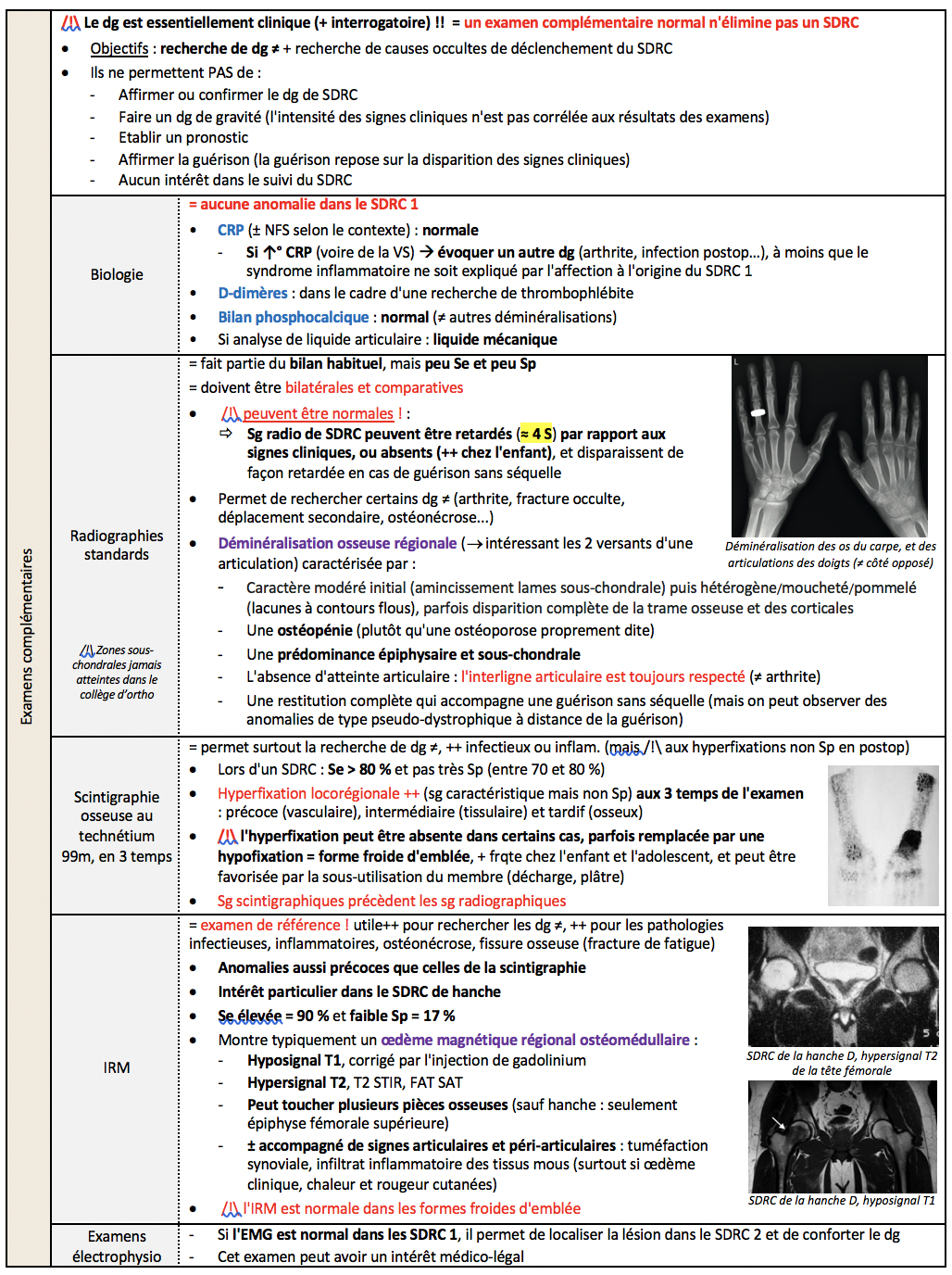 Examens complémentaires dans SDRC