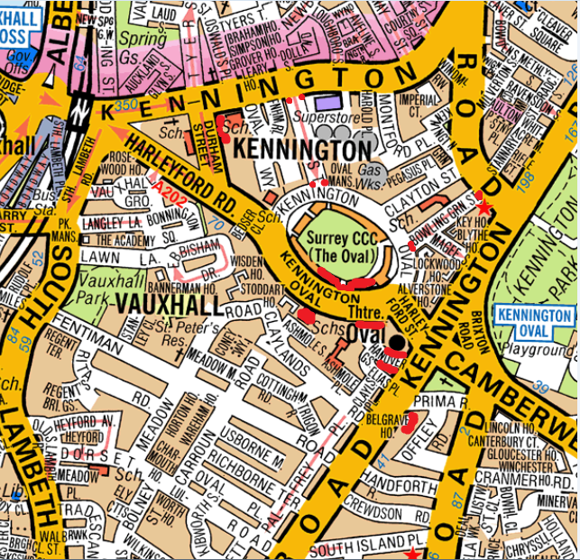 F Harleyford st LorR Kennington Park road ( R F Clapham road)