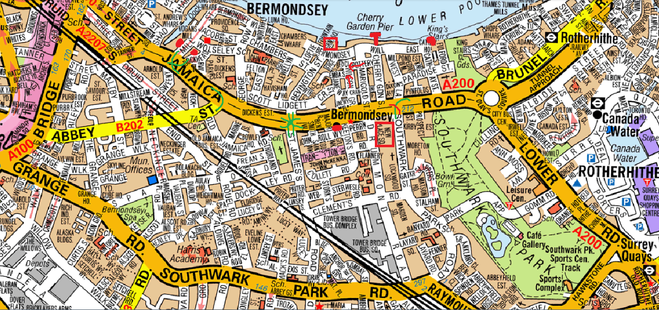 Rotherhithe st Two Way Area: Timber Pond road Arrival Details: Salter road, Into N.E Rotherhithe st, North East on Rotherhithe st Departure details: North East on Rotherhithe st, L/By LorR Rotherhithe st