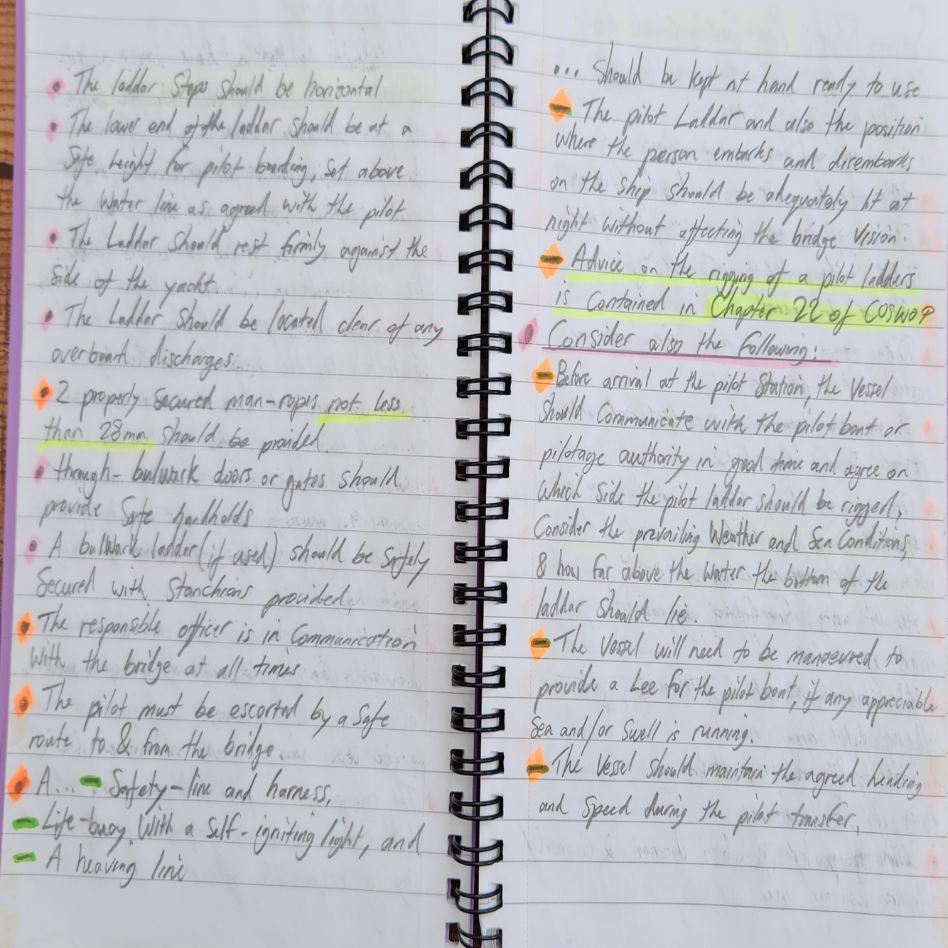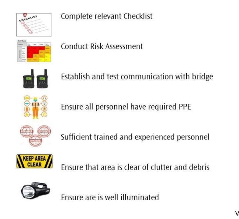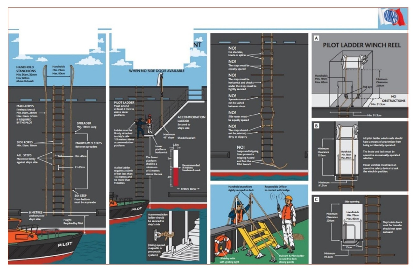 • The Pilot ladder is properly rigged and secured in place.