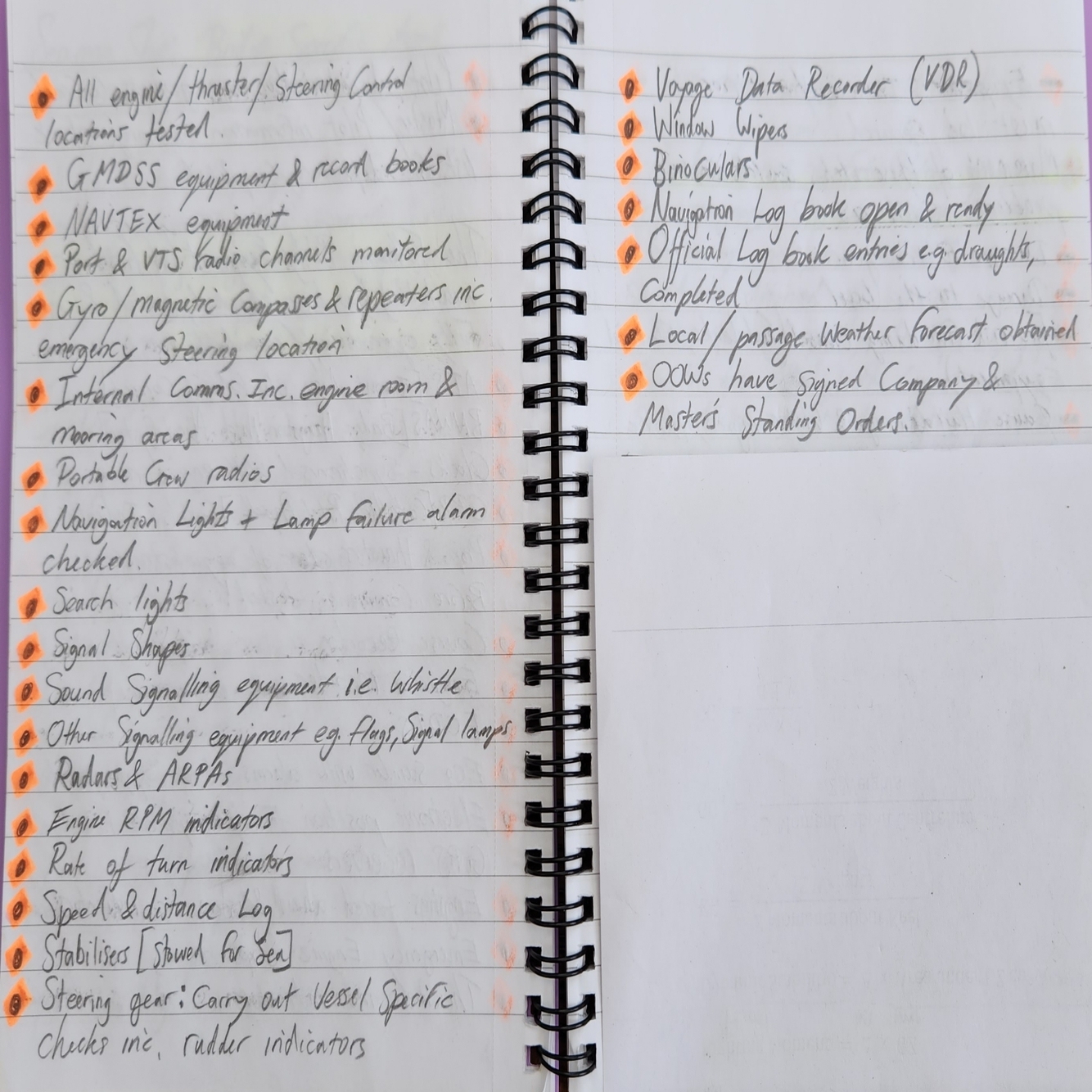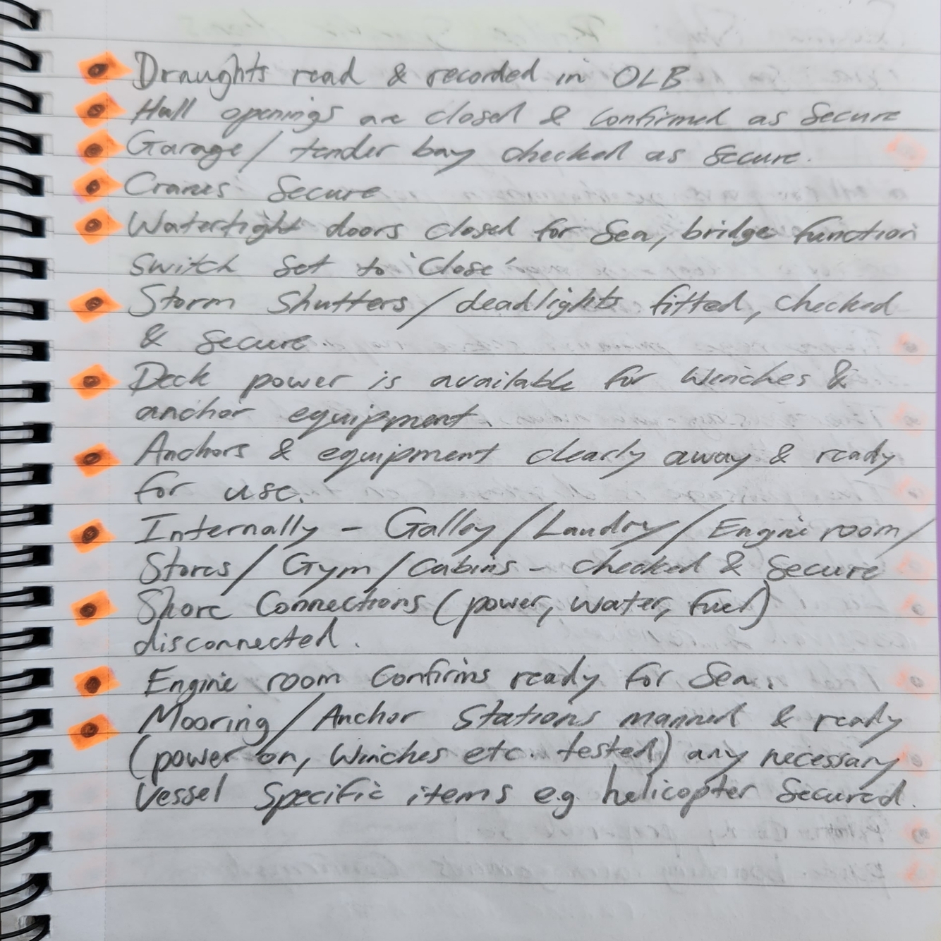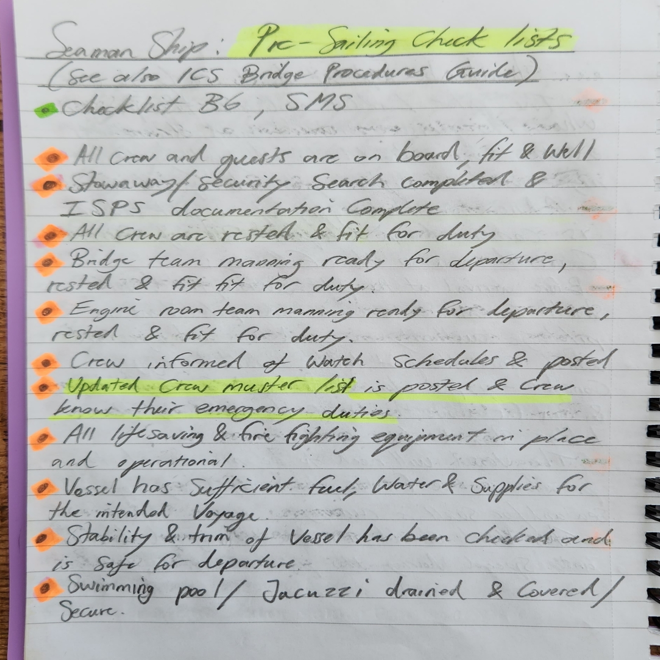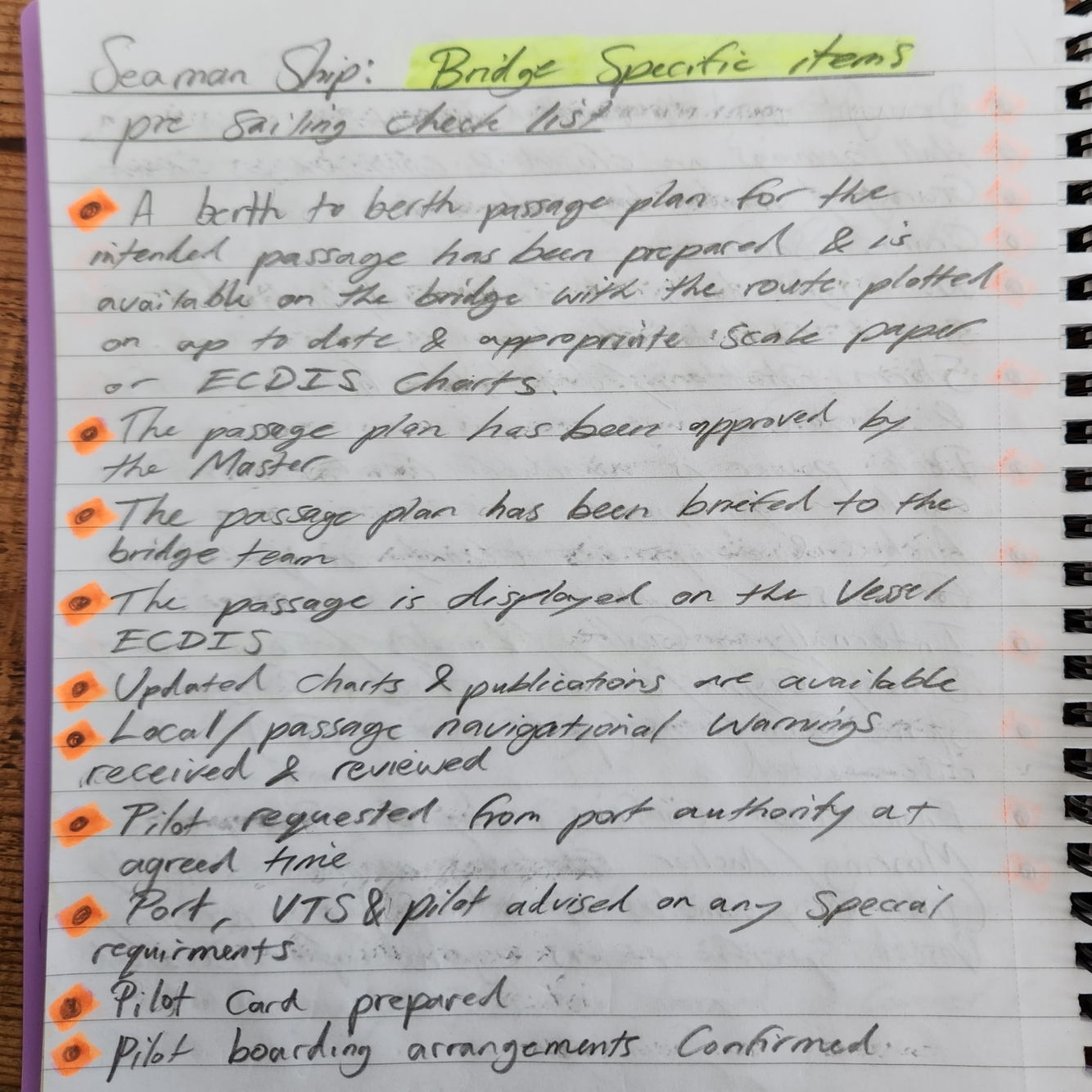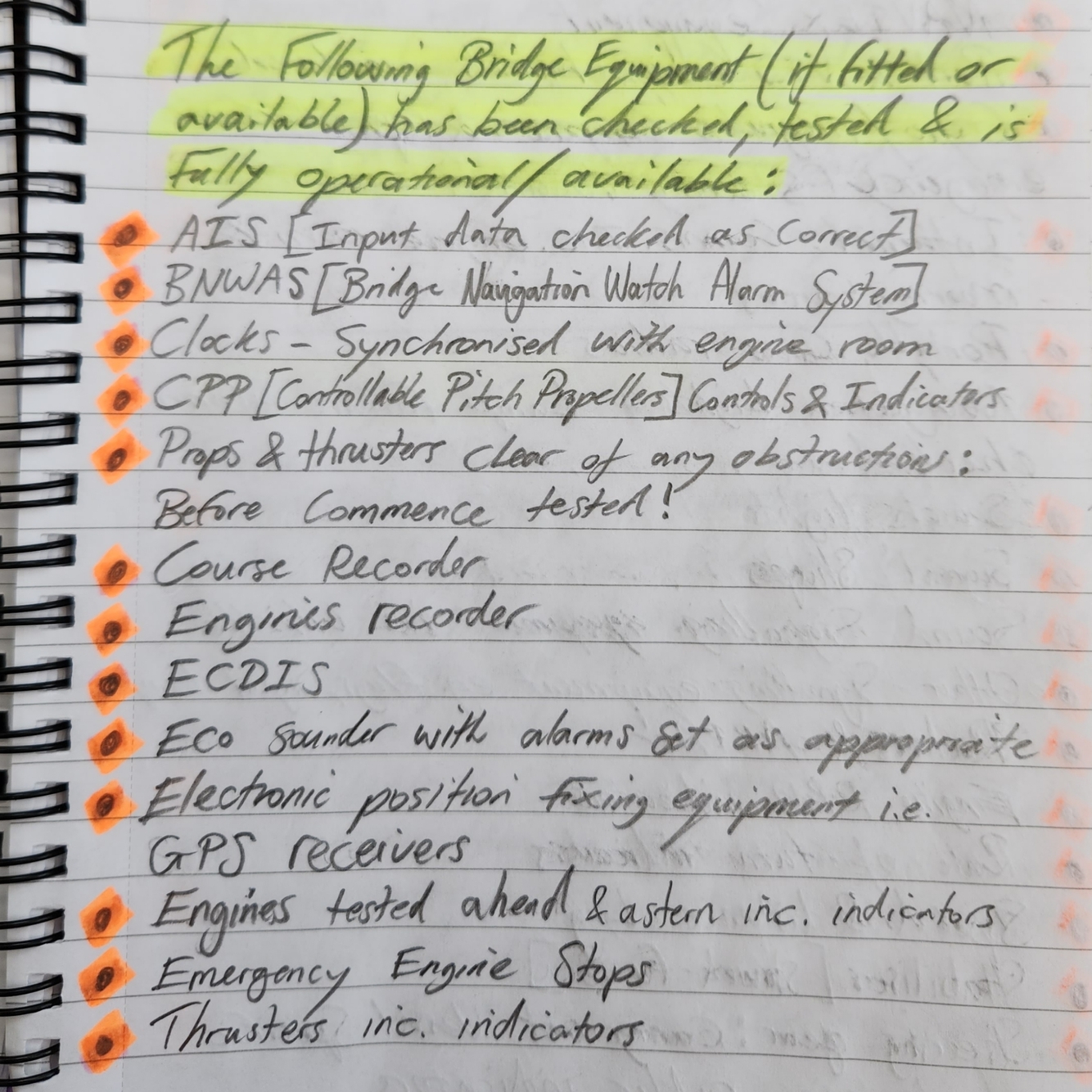 Bridge Specific items: pre-sailing check list
