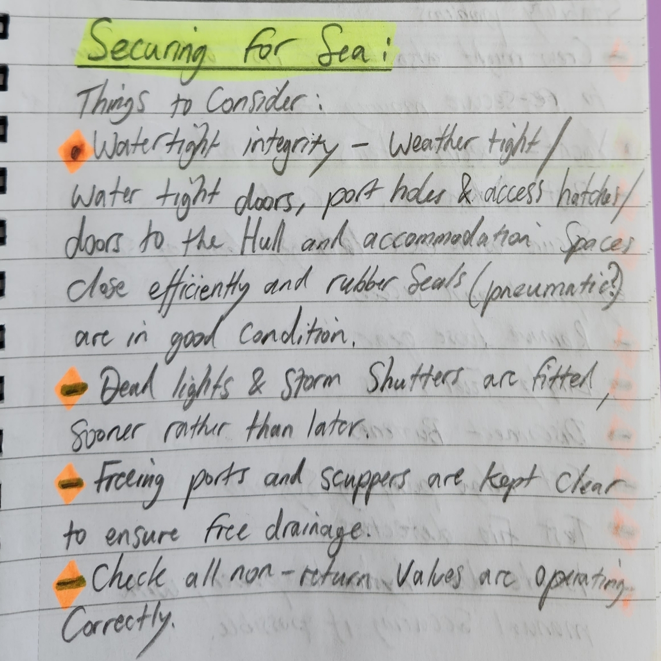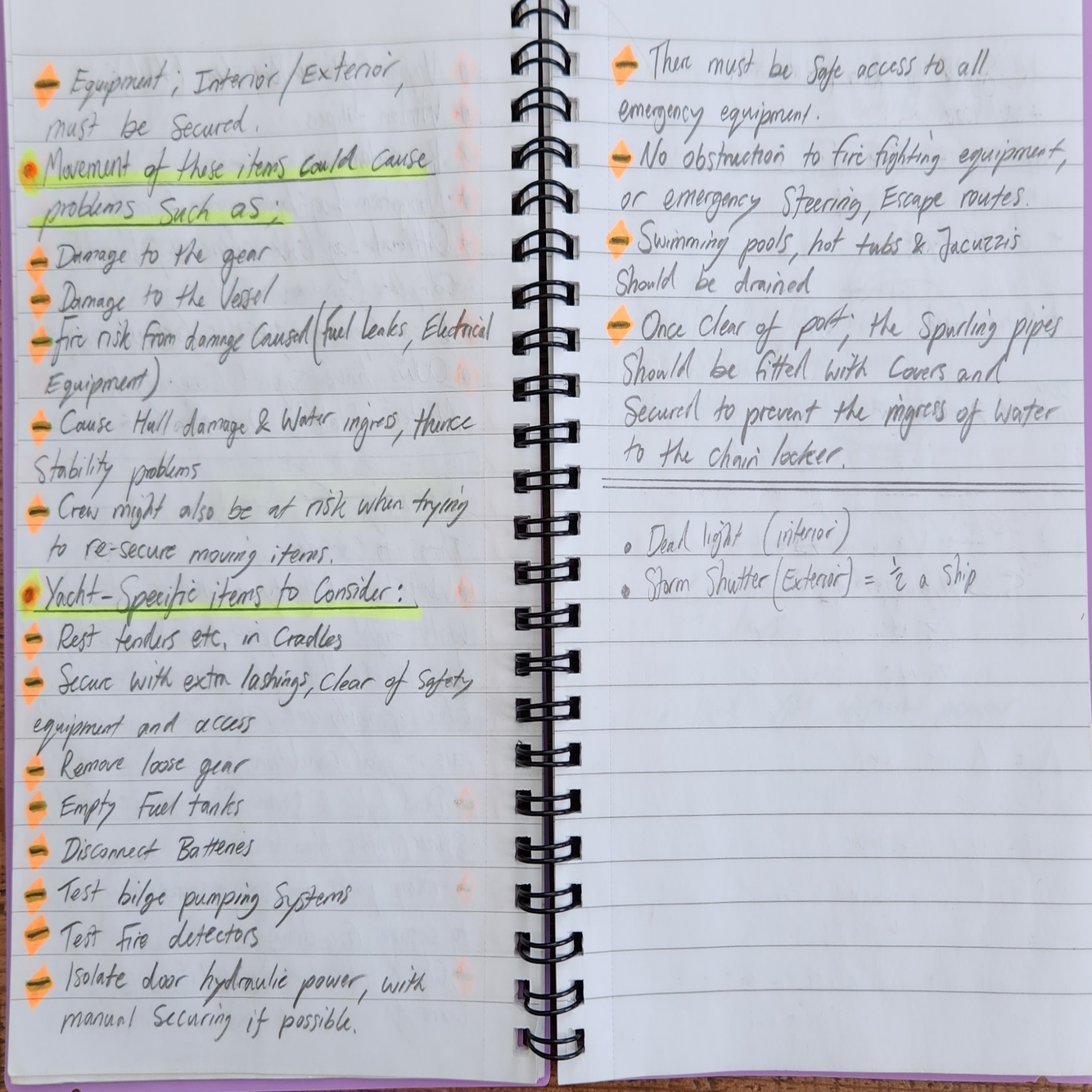 Pre-Sailing Check lists: