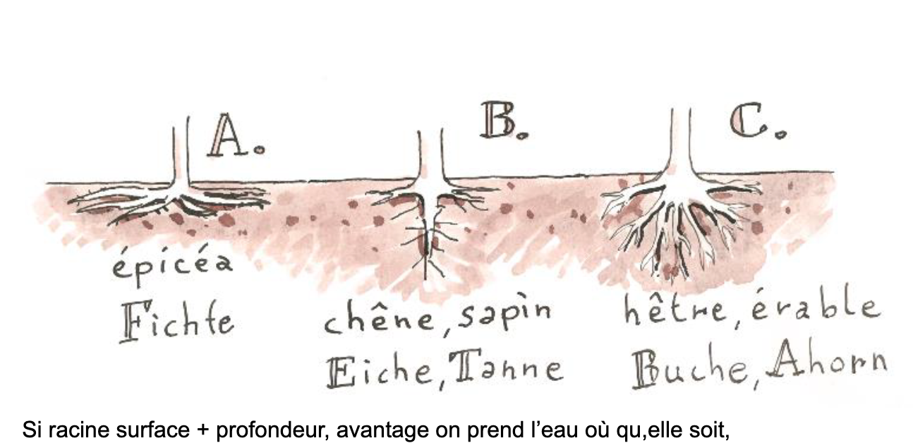 Peut prendre eau en pronfondeur et surface. Et très bien ancré dans le sol, ne sera déraciné