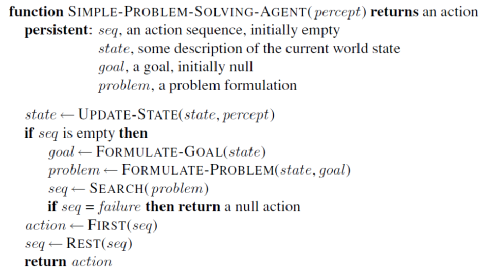 Describe the simple problem-solving agent providing both the pseudocode and an informal description.