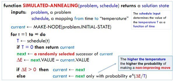 Version of stochastic hill climbing where some downhill moves are allowed.