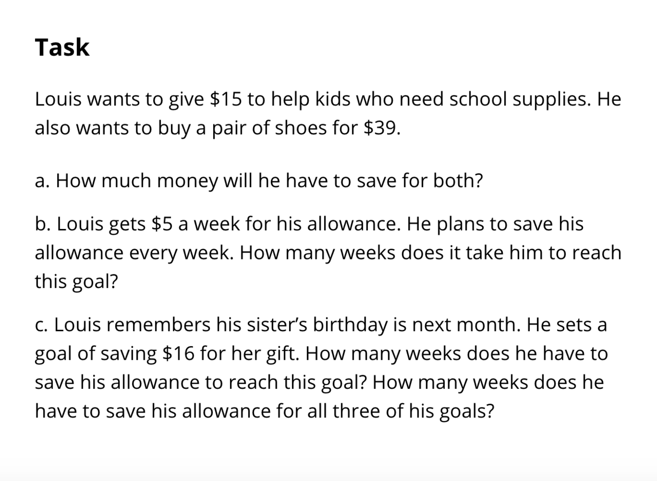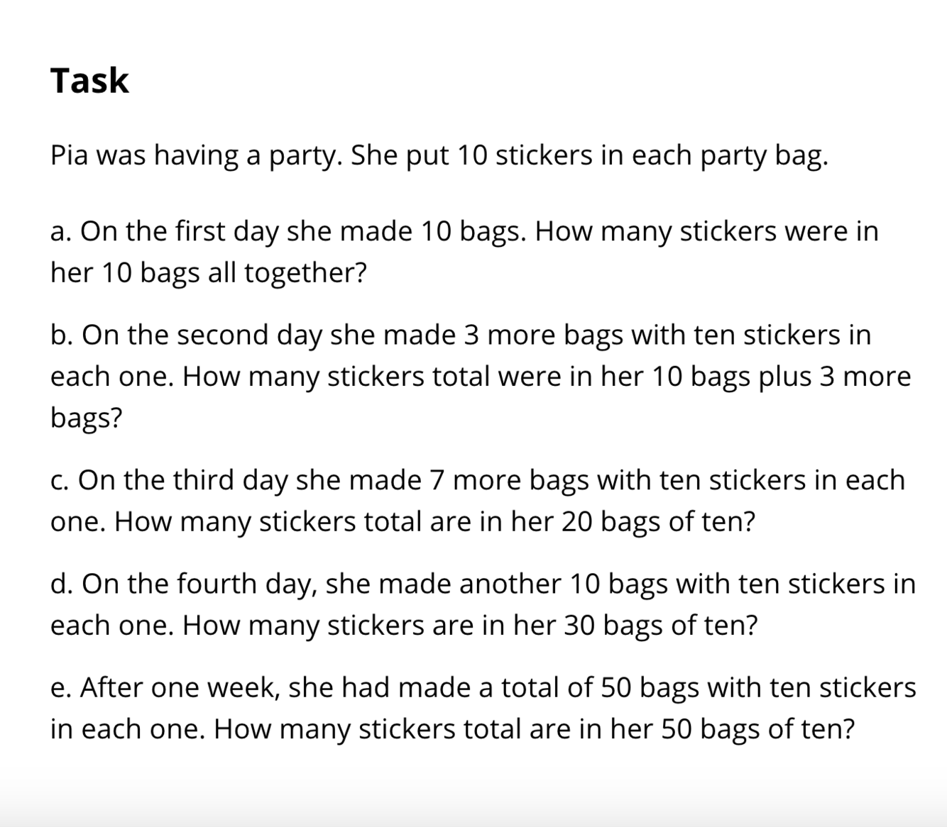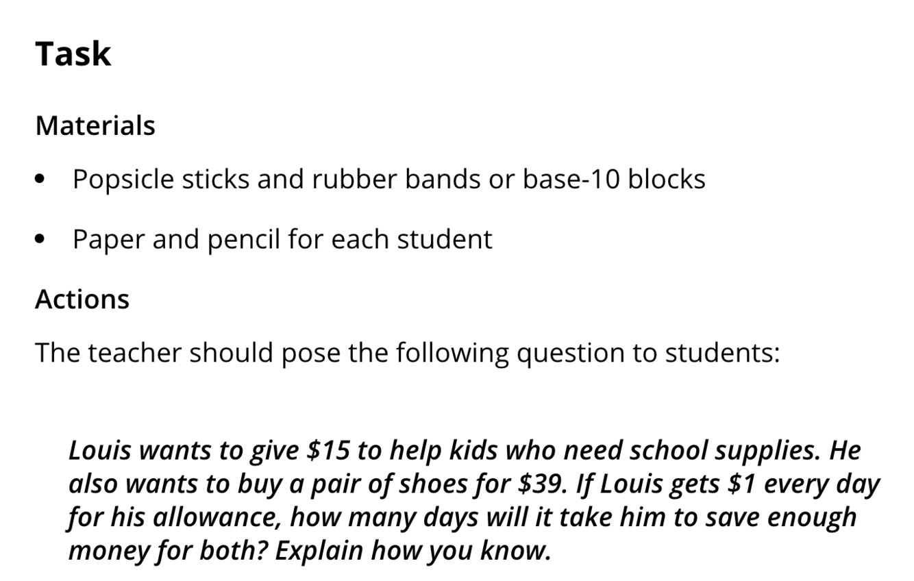 EX. https://tasks.illustrativemathematics.org/content-standards/2/OA/A/1/tasks/1309