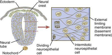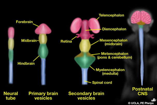 before the closure of the neural tube a visibly bigger rostral end of the embryo Precede the brain (with irregularities corresponding its major divisions)