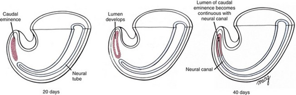 continuous with the lumen about 3r weeks after the caudal neuropores closes