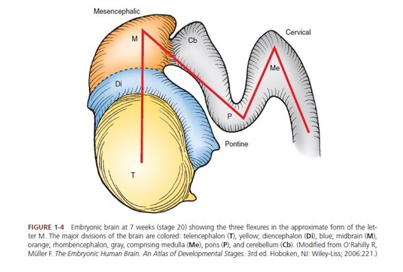 Flexures in the neural tube help to fit the the initially cylindrical brain in what will eventually
