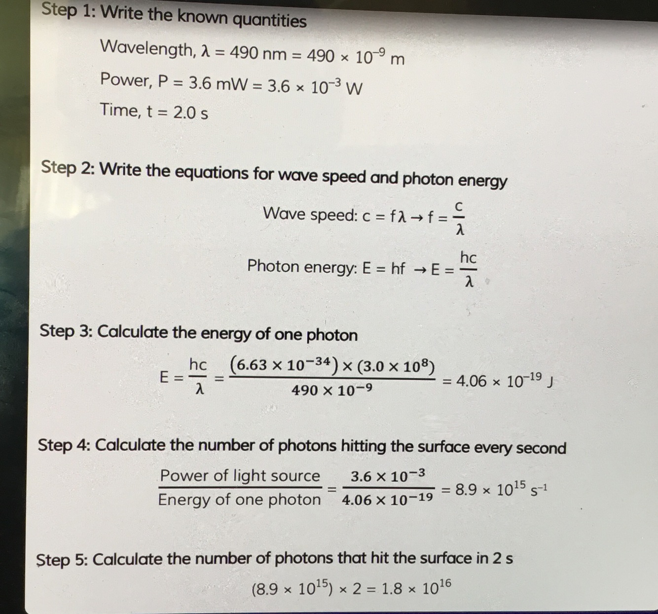 Formulas for photon energy