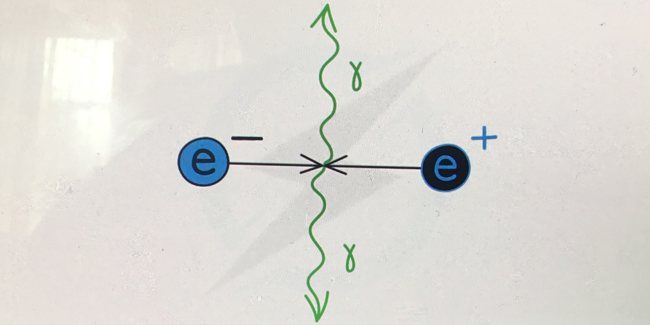 how does electron and positron annihilation look like, and how do you calculate min energy of one photon after annihilation