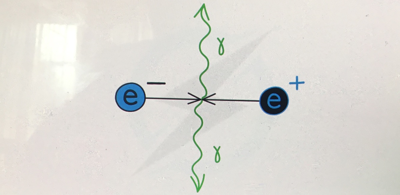 electron and positron hit directly and release gamma radiation perpendicularly, energy: Emin = h*fmin
