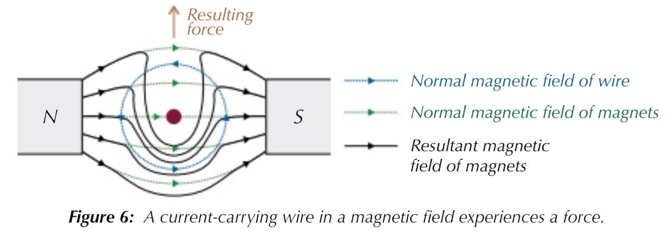 The force on a current carrying wire at a right angle to a magnetic field is proportional to magnetic flux density, B.