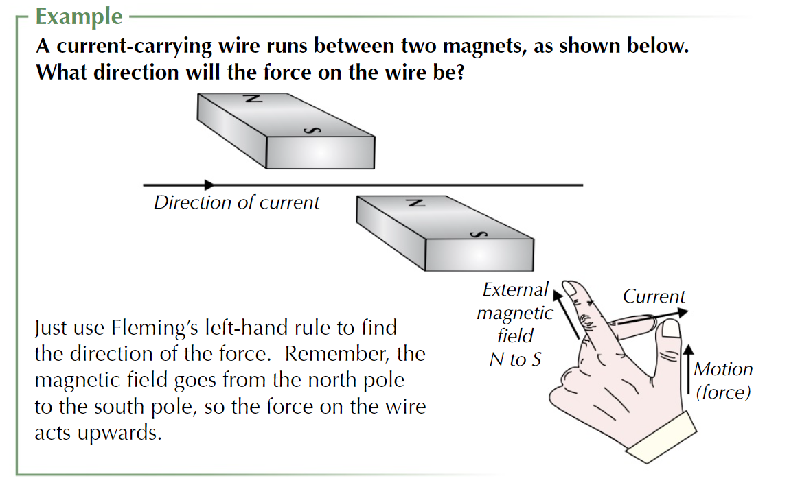 What rule is used to work out the direction of the force exerted on a current-carrying wire in a magnetic field and how does it work?