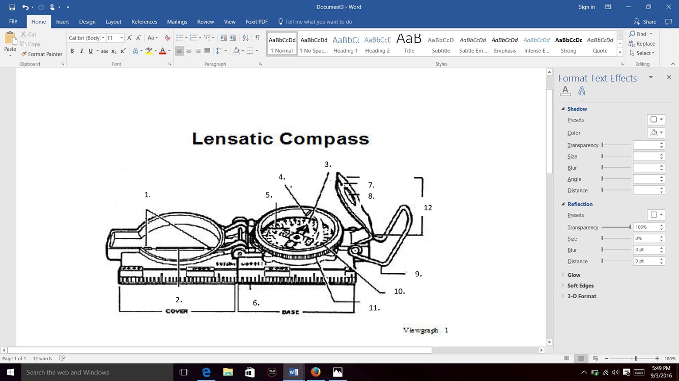 What are the 12 parts of the lensatic compass?