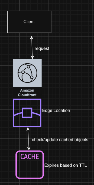 * when client does an http request into your edge location, then edge location will see if it has your results in the cache. If it doesn’t, it’ll store results in the cache.