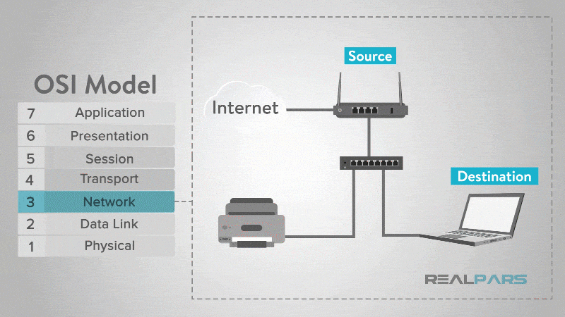 Each packet has layer 3 header that includes a source and destination Layer 3 address.